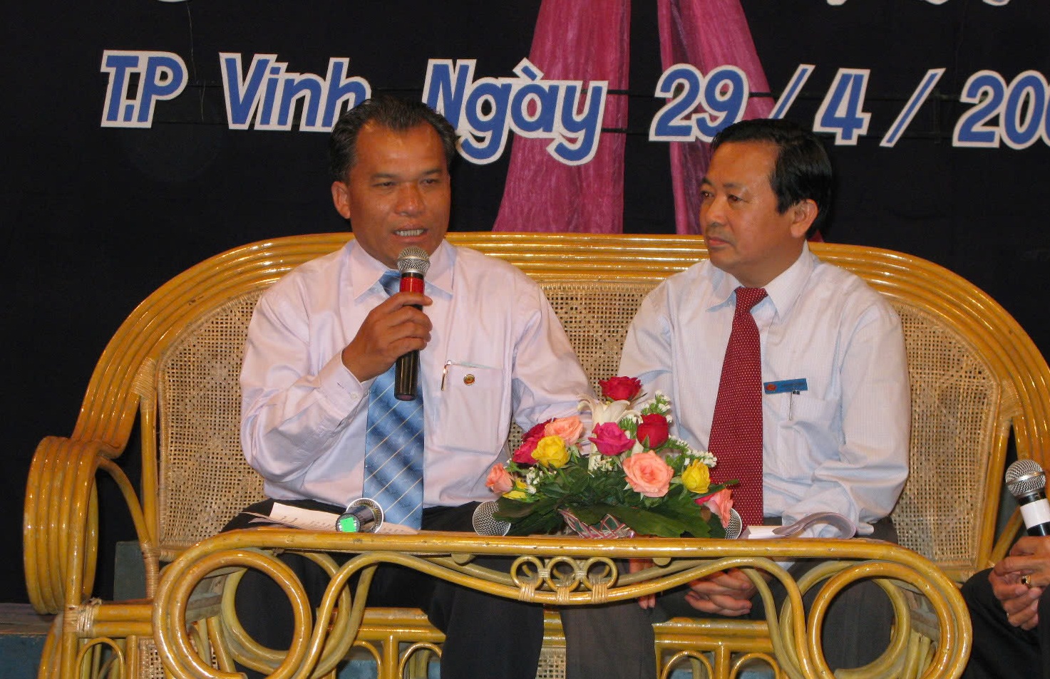 Nhà báo Bounchom Vongphet, Tổng giám đốc Đài truyền hình Quốc gia Lào (trái) cùng Nhà báo - NSNA Trần Duy Ngoãn tại một sự kiện hữu nghị Việt- Lào