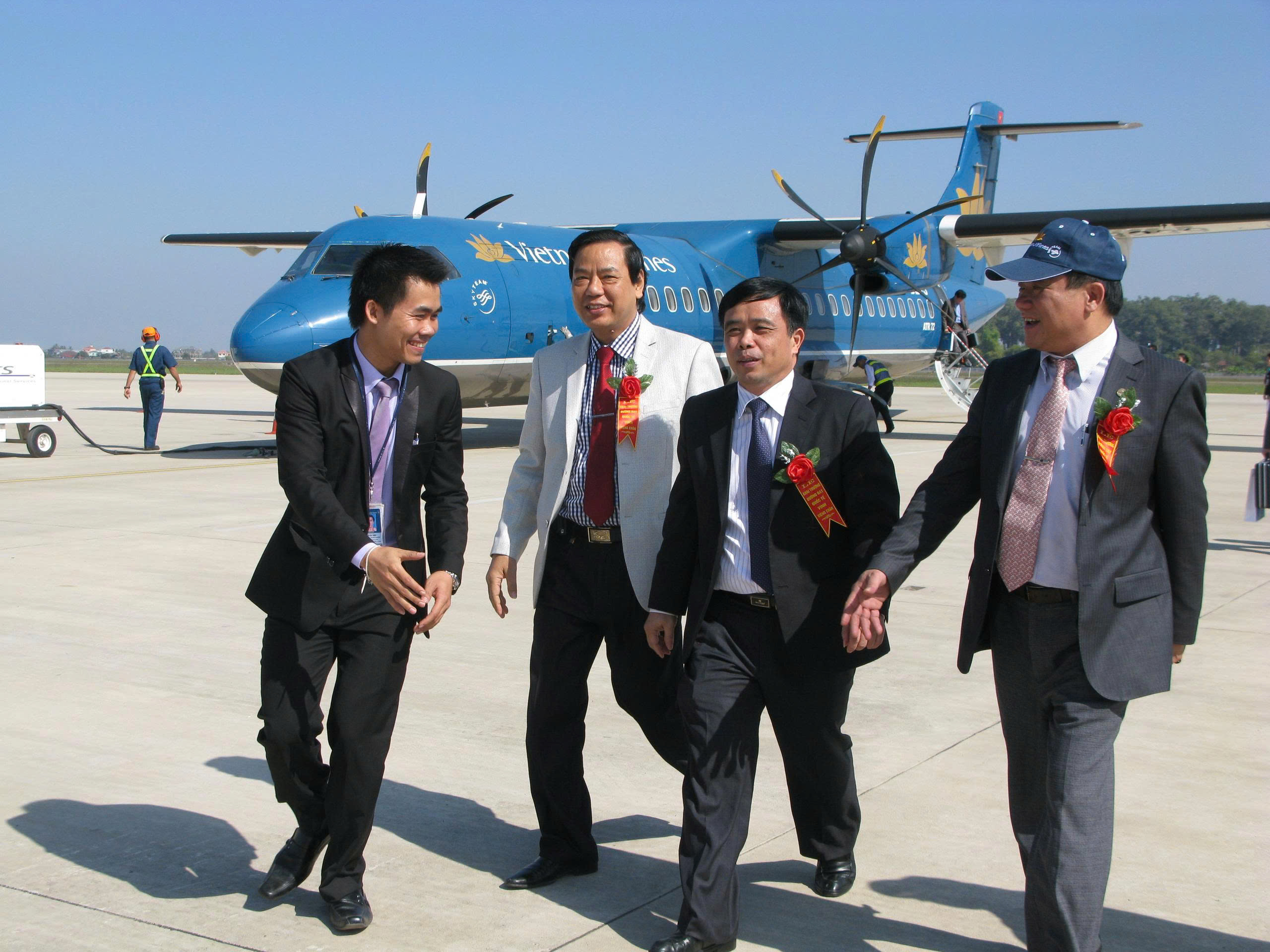 Ông Nguyễn Hồng Kỳ trong đợt mở đường bay Vinh- Vientiane (ảnh tư liệu Quốc Khánh)