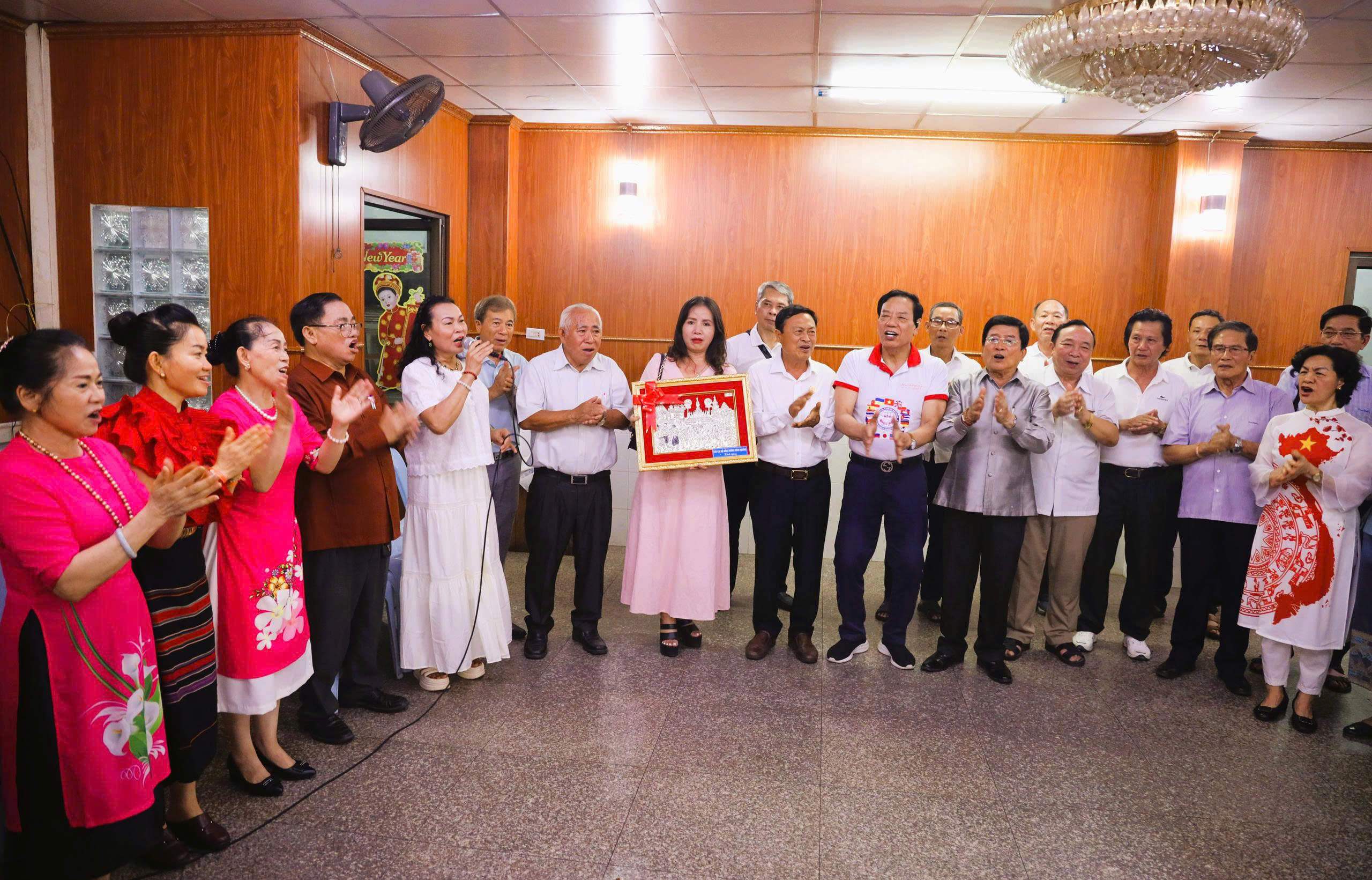 Ông Nguyễn Hồng Kỳ- Phó chủ tịch Thường trực Liên hiệp Các tổ chức hữu nghị tỉnh Nghệ An tặng quà Câu lạc bộ Đồng hương Xiengkhuang
