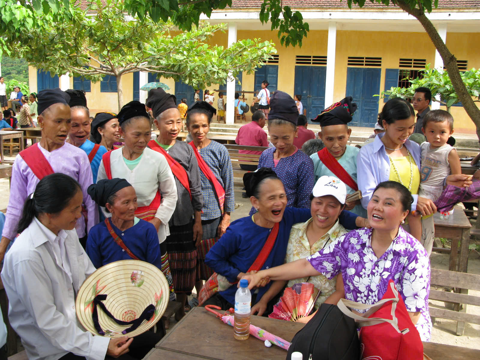Bà con Việt kiều Xiengkhuang thăm và tặng quà bà con bản Xằng năm 2008 (ảnh tư liệu Quốc Khánh)