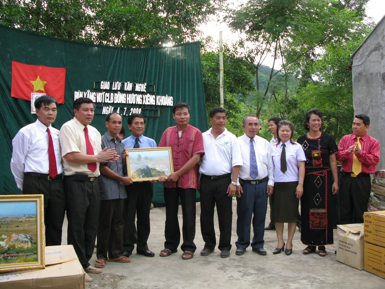 Ông Khăm chăn Si phăn thong (Khamchanh Siphanethong), tên Việt là Trần Hanh, Chủ nhiệm Câu lạc bộ Đồng hương Xiengkhuang cho biết, Câu lạc bộ thành lập cách đây 21 năm, bà con là người Lào gốc Việt đến từ tỉnh Xiengkhuang, hiện sinh sống tại thủ đô Vientiane của nước bạn Lào. Câu lạc bộ nhiều năm qua được đánh giá là “cầu nối vun đắp quan hệ hữu nghị Việt – Lào” nổi bật nhất; luôn gìn giữ và lan tỏa bản sắc Việt tại Lào với các sinh hoạt văn hóa, văn nghệ, lễ tết truyền thống, giáo dục thế hệ trẻ về nguồn cội trên đất Lào. Tham gia buổi đón đoàn có ông Khăm Hùng (Khamhoung Xaychaleun), hiện là Chủ tịch Tổng hội người Việt Nam tại Lào. Hồi tôi làm Trưởng đại diện VOV tại Vientiane, khi chưa mua được ô tô cho cơ quan, ông Hùng đã cho mượn chiếc Camry mầu đen sang trọng gần một năm. Lúc đón đoàn Tổng giám đốc VOV Vũ Văn Hiền sang thăm Lào, xe tôi chạy trước, ông phó Ban hợp tác Quốc tế gọi điện nhắc nhẹ, xe cậu đừng chay trước Tổng giám đốc như thế, “phạm húy” đó, vì lúc ấy Tổng giám đốc ngồi trên chiếc Hyndai của bạn loại rẻ tiền hơn, tôi liền lách sang một bên để xe đoàn vượt lên. Gặp lại bà con Đồng hương Xiengkhuang, làm tôi nhớ bao kí ức đẹp. Một dịp được đón bà con về thăm bản Xằng, xã Lục Dạ, huyện Con Cuông, tỉnh Nghệ An, tôi mới biết, bà con là những người quê Xiengkhuang từng sơ tán về bản Xằng trong những năm kháng chiến chống Mỹ ác liệt nhất, mà Xiengkhuang, cánh đồng Chum là mặt trận đã hứng chịu hàng vạn tấn bom Mỹ. Ở đây con em Việt kiều được học từ Tiểu học nên ai cũng biết chữ Việt. Có lẽ nhiều người biết đến khách sạn Cha Lơn Xay (Chaleunxay) giữa trung tâm thủ đô Viêng Chăn, cạnh chợ sáng nhưng ít biết ông chủ là Khăm Chăn Sỉ Phăn Thoong, đồng thời cũng là Chủ nhiệm Câu lạc bộ Đồng hương Xiengkhuang. Ngoài dịch vụ kinh doanh khách sạn, ông còn có Công ty dịch vụ đấu thầu xây dựng và phát triển nông lâm với khối tài sản hàng triệu đô. Ông sinh tại tỉnh Xiêng Khoảng, quê gốc ở huyện Hương Sơn, Hà Tĩnh. Ông cho biết, năm 1950 đến năm 1966, ông học Cao đẳng Sư phạm Hải Hưng rồi về dạy tại Trường lưu học sinh Lào T78 ở Hà Bắc và Phú Thọ. Sau đó ông về dạy học ở thủ đô Vientiane cho đến năm 1990, vì vậy các thế hệ học trò ông có nhiều người là lãnh đạo cấp cao của Lào. Ông kể, thời ấy, đế quốc Mỹ tiến hành chiến dịch Cù Kiệt (Kukiet), dồn dân lập ấp chiến lược, xiengkhuang là mặt trận ác liệt nhất nước Lào lúc bấy giờ nên gia đình ông được hai nhà nước Lào và Việt Nam sơ tán sang Bản Xằng. Lúc đó gia đình li tán, mỗi người một nơi, thời gian dài mất liên lạc với nhau, mẹ và các anh em nhờ bộ đội Việt Nam tìm giúp rồi đưa sang Bản Xằng đoàn tụ.