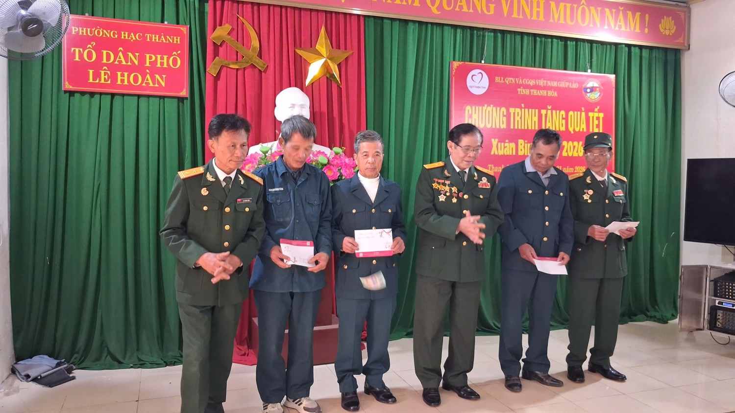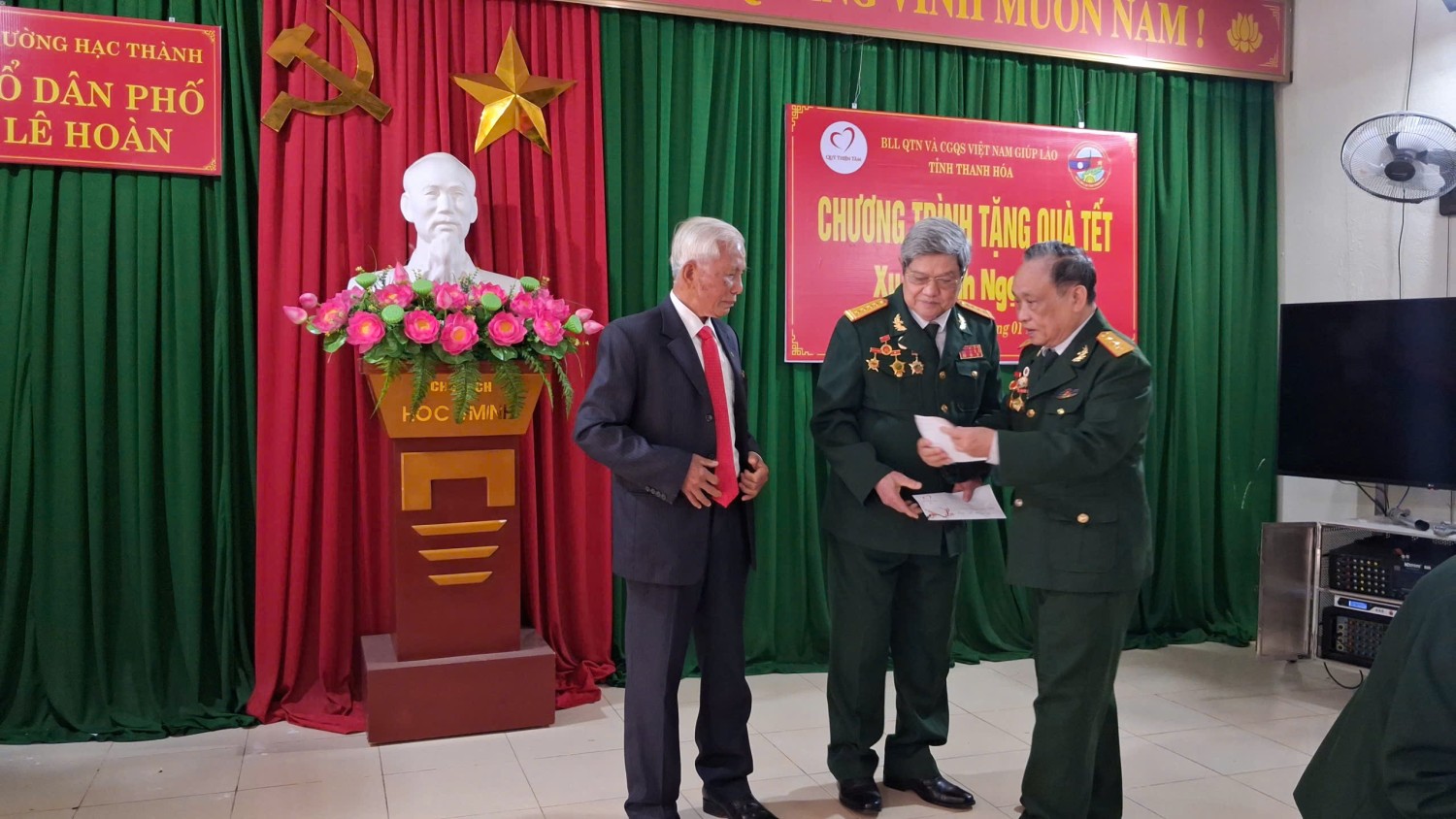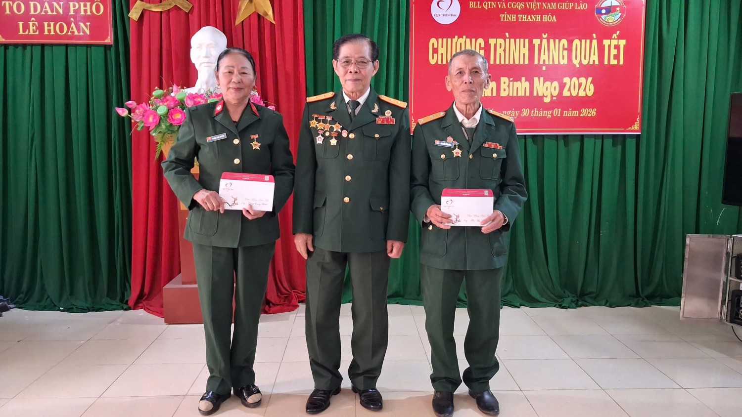 Sáng 30/01/2026, tại Tổ dân phố Lê Hoàn, phường Hạc Thành, tỉnh Thanh Hóa, đại diện Ban Liên lạc Cựu Quân tình nguyện và Chuyên gia Việt Nam giúp Lào Toàn quốc phối hợp Ban liên lạc tỉnh Thanh Hóa và nhà tài trợ Tập đoàn Vingroup trao 74 suất quà cho Cựu chiến binh Quân tỉnh nguyện và Chuyên gia Việt Nam giúp Lào trên địa bàn toàn tỉnh Thanh Hóa.