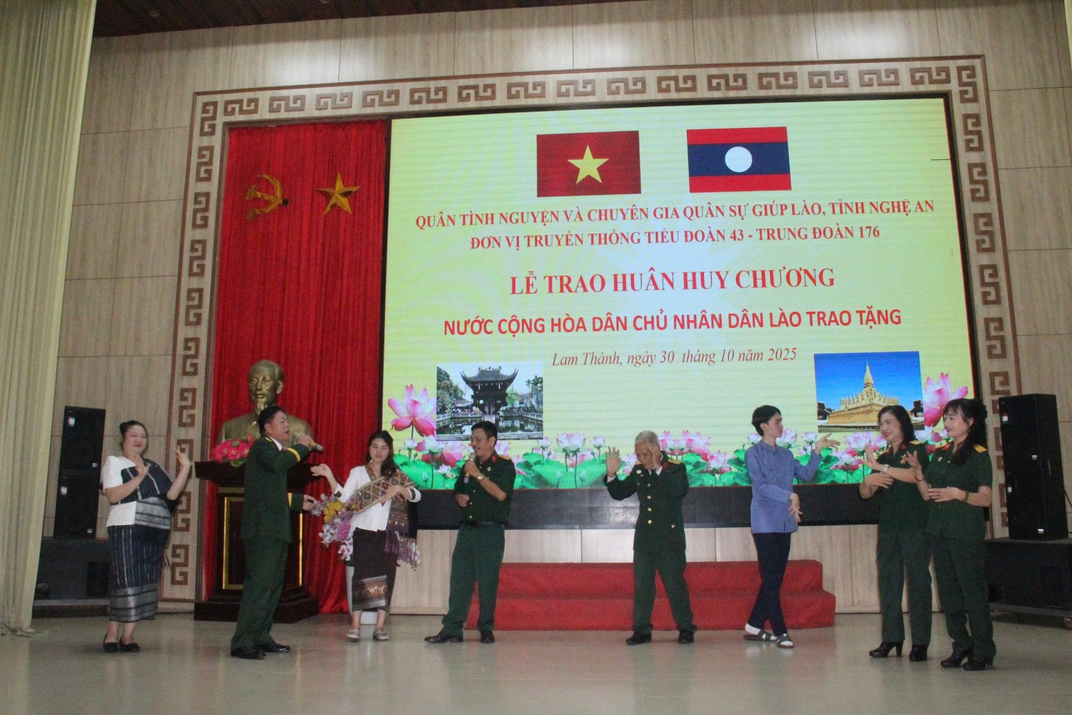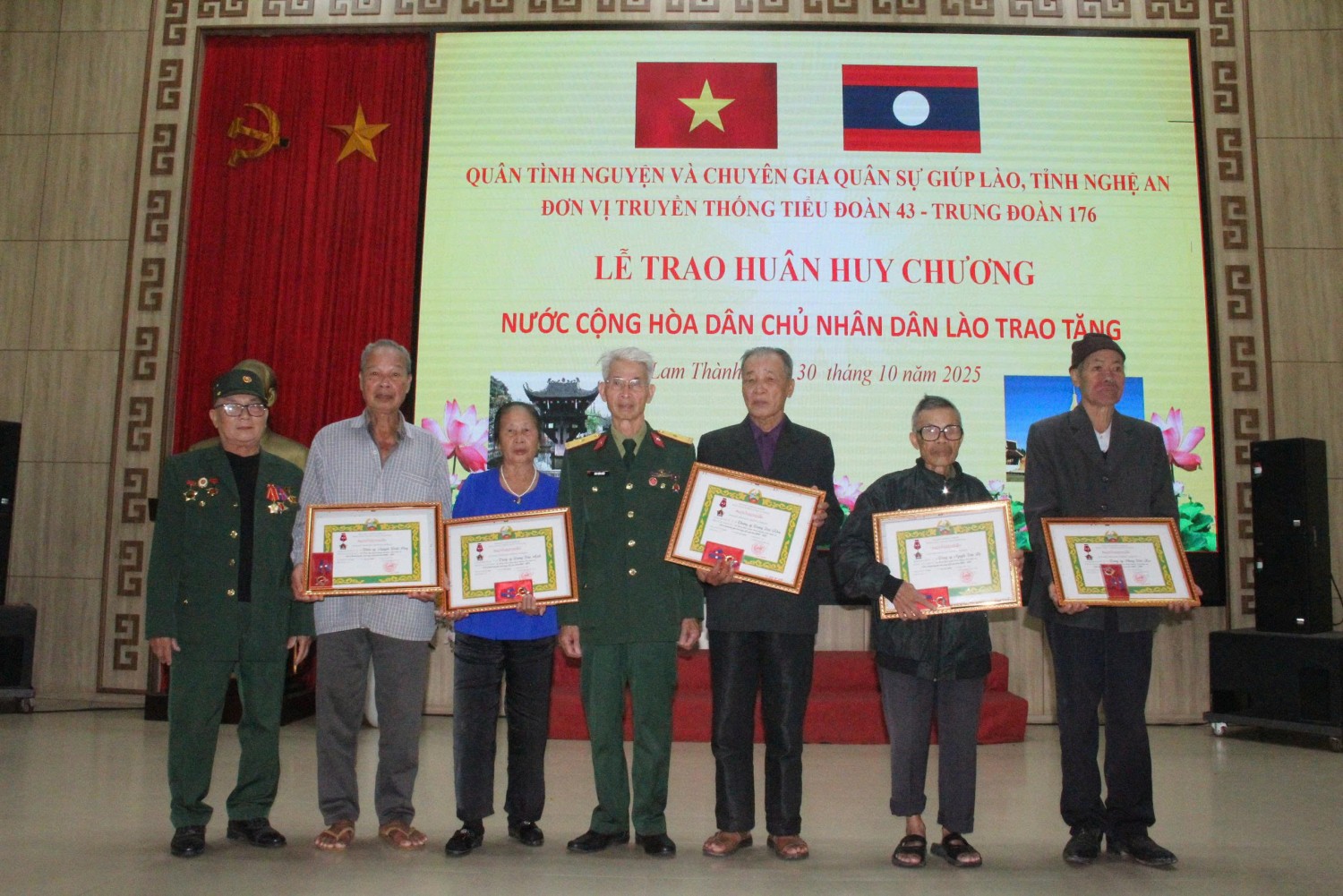 Sáng 30/10, tại xã Lam Thành tỉnh Nghệ An, Ban liên lạc Quân tình nguyện và Chuyên gia Quân sự Việt Nam (QTN & CGQS) giúp cách mạng Lào long trọng tổ chức Lễ trao tặng Huân Huy chương của Nước Cộng hòa Dân chủ Nhân Dân Lào cho các cựu chiến binh (CCB) quân tình nguyện thuộc Tiểu đoàn 43, Quân tình nguyện Việt Nam giúp cách mạng Lào sinh sống tại khu vực huyện Hưng Nguyên cũ.