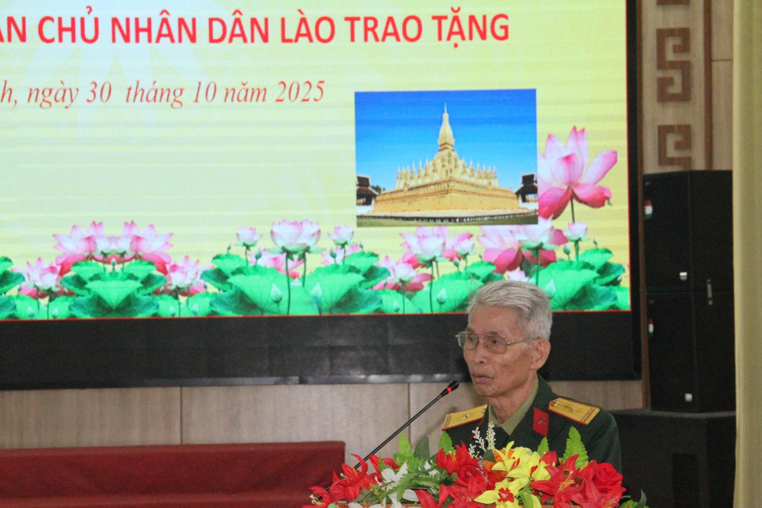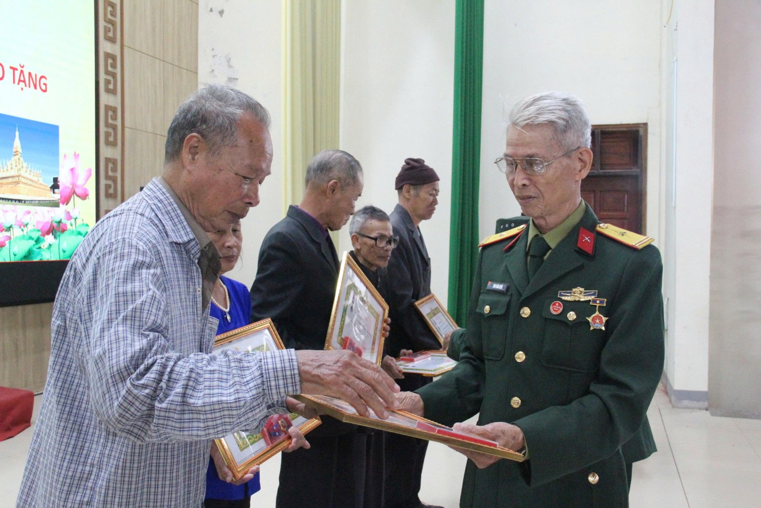 Ban tổ chức trao Huân Huy chương của Lào cho các CCB và thân nhân CCB