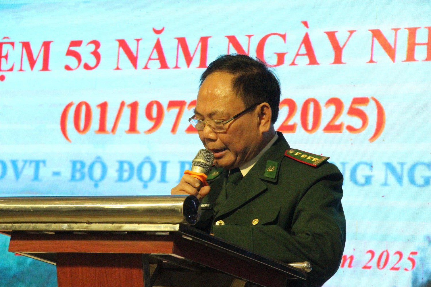 Sáng 23/11, tại Phường Thái Hòa, tỉnh Nghệ An, các cựu lính Biên phòng tổ chức cuộc gặp gỡ đầy xúc động nhân kỷ niệm 53 năm ngày nhập ngũ (1972-2025). Tham dự có đồng chí Chu Anh Tuấn- Tỉnh ủy viên, Bí thư Đảng ủy phường Thái Hòa, Nghệ An;  ông Hoàng Xuân Lương, Nguyên Thứ trưởng, Phó Chủ nhiệm Ủy ban Dân tộc, cựu lính Biên phòng Nghệ An; các đồng chí:Thiếu tướng Nguyễn Sinh Xô, Nguyên Cục trưởng Cục Phòng chống tội phạm ma tuý BĐBP; Thiếu tướng Bùi Song Nhâm, Trưởng Ban Liên lạc Truyền thống Bộ Tham mưu BĐBP; Đại tá Đinh Ngọc Văn, Nguyên Chỉ huy trưởng BĐBP Nghệ An; Đại tá Vi Tố Định, Nguyên Phó chỉ huy trưởng BĐBP Nghệ An cùng các cựu lính biên phòng nhập ngũ cách đây 53 năm.