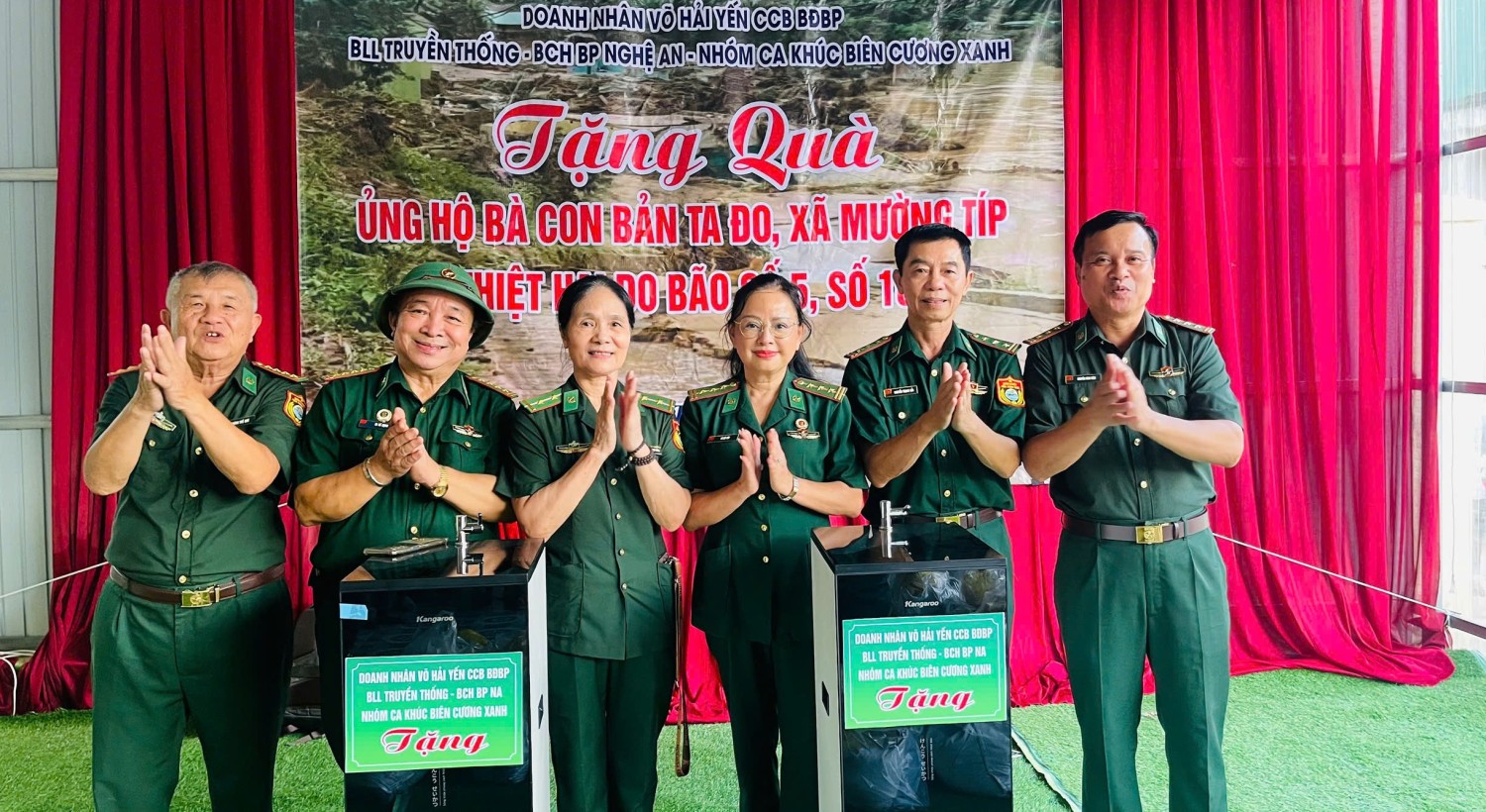 Với tấm lòng và tinh thần “Lá lành đùm lá rách”, “Thương người như thể thương thân”, Nhóm ca khúc Biên cương xanh là những cựu chiến binh Bộ đội Biên phòng do Đại tá Vi Tố Định- Nguyên Phó chỉ huy Trưởng Bộ đội biên phòng Nghệ An sáng lập, phối hợp doanh nhân Võ Hải Yến (Thượng tá, CCB Biên phòng hiện cư trú tại Hà Nội) đã có chuyến thiện nguyện tại các bản dọc Biên giới Việt Nam Lào từ ngày 16 đến 17/10/2025, tặng hàng trăm suất quà cứu trợ bà con bị thiệt hại do cơn bão số 5 và số 10.