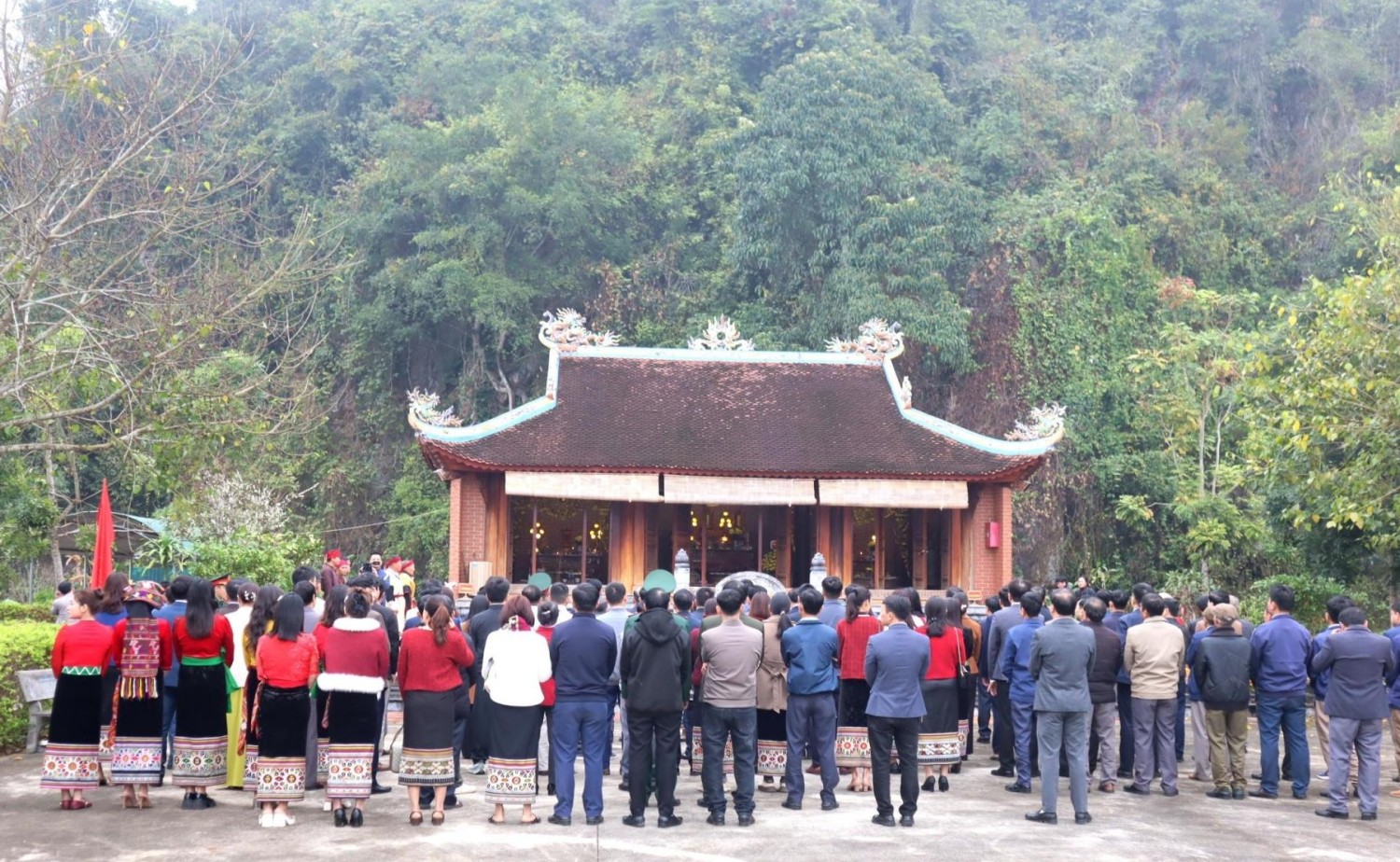 Nổi bật trong chuyến đi, đoàn đã ghé thăm và chiêm bái Đền Chiêng Ngam trong quần thể Hang Bua.