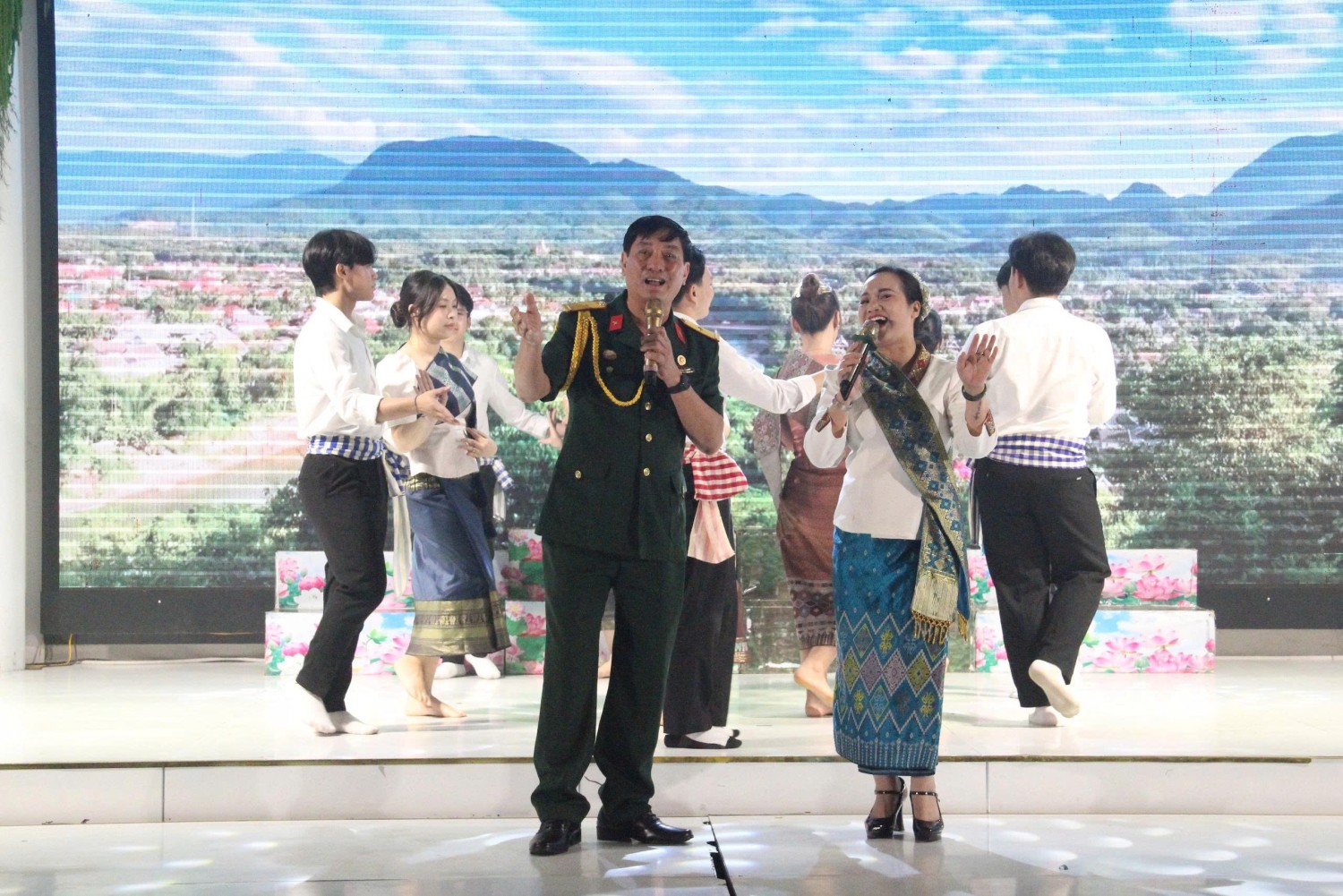 Lễ kỉ niệm còn được thưởng thức chương trình nghệ thuật đặc sắc do nhóm Biên cương xanh và sinh viên Lào biểu diễn, ca ngợi Đảng, quân đội và nhân dân hai nước Việt Nam- Lào, ca ngợi mối tình Việt Lào keo sơn gắn bó, thủy chung, son sắt.